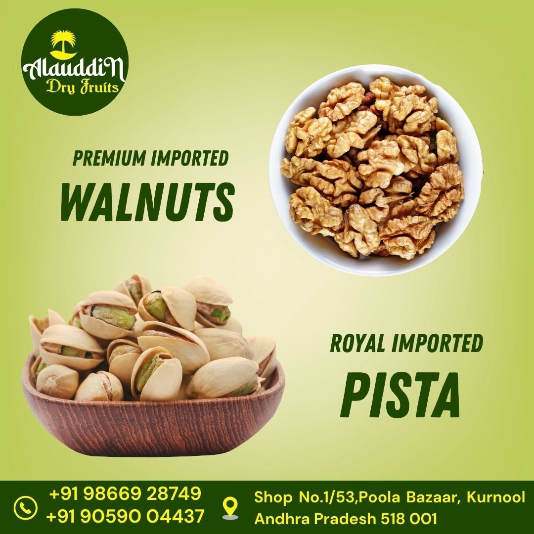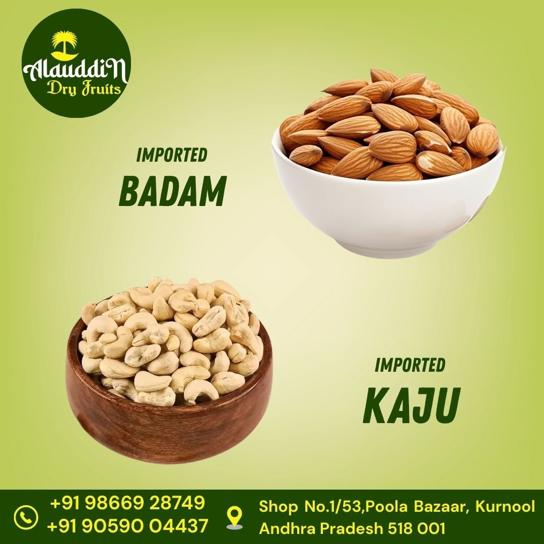 Welcome to Alauddin Dry Fruits, Kurnool’s trusted destination for 100% fresh and premium quality dry fruits. Located in the heart of the city at Poola Bazaar, we specialize in providing the finest selection of nuts, dried fruits, seeds, and healthy snacks.