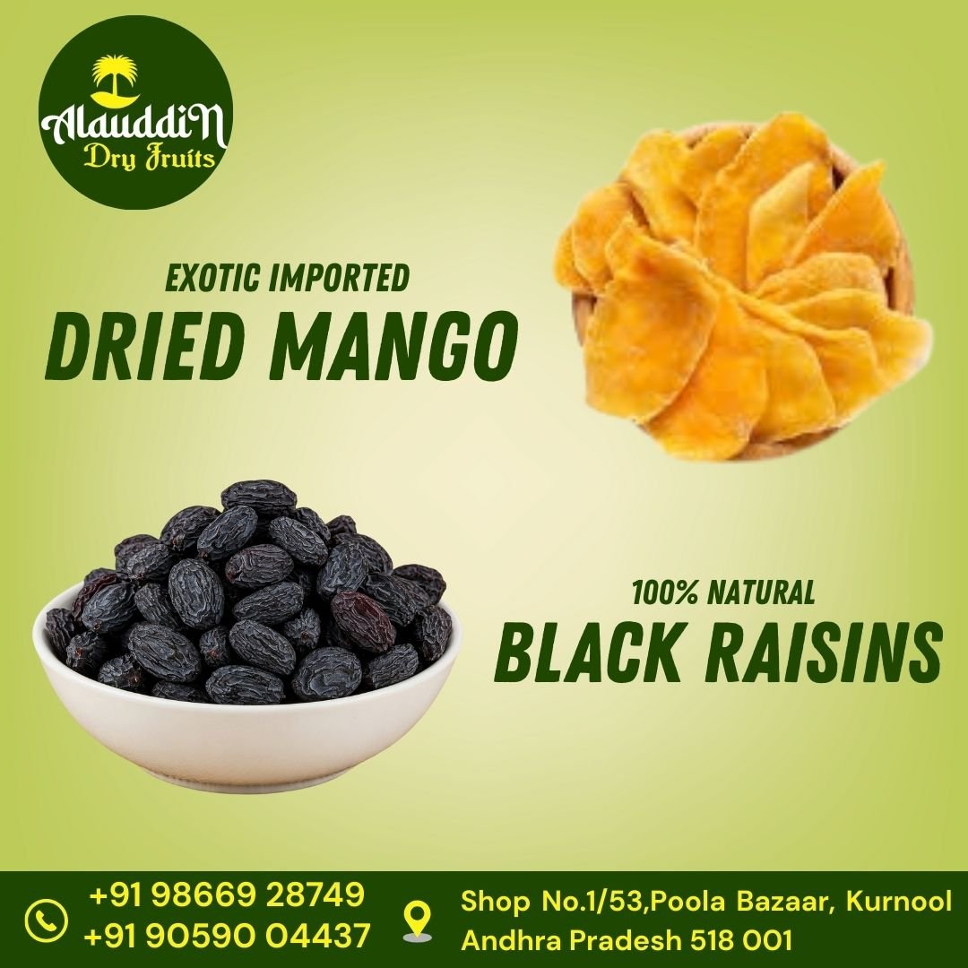 Raisins (Kishmish): Available in Golden, Black, and Green varieties.