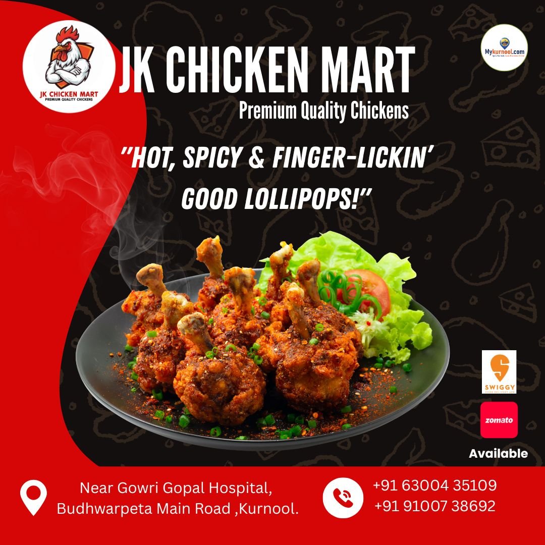 For those who love convenience, JK Chicken Mart is also available on Swiggy and Zomato. Just order online and enjoy piping hot chicken dishes delivered straight to your doorstep in Kurnool.
