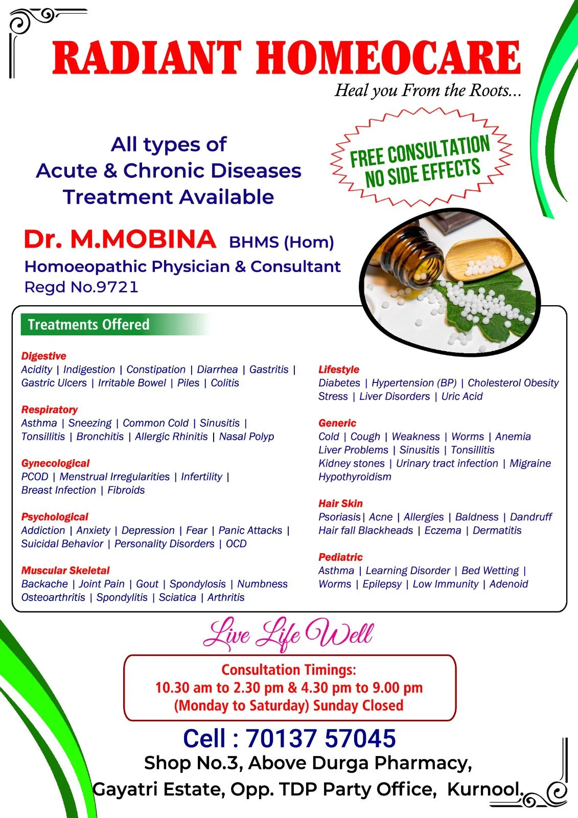 Radiant Homeocare Kurnool: Heal Chronic Diseases Naturally | Dr. M. Mobina Homeopath