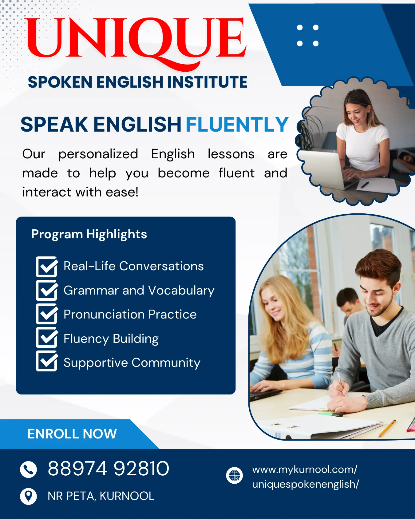 Join Unique Spoken English Institute, Kurnool today and take the first step towards a successful future.